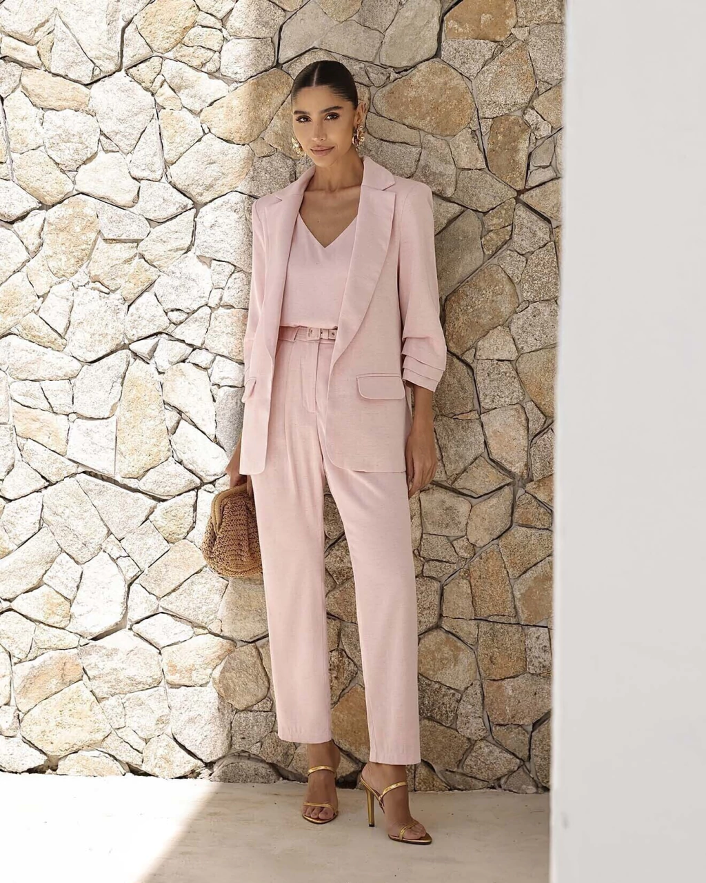 Composição: 60% poliéster 36% viscose 4%linho - forro 100% poliéster